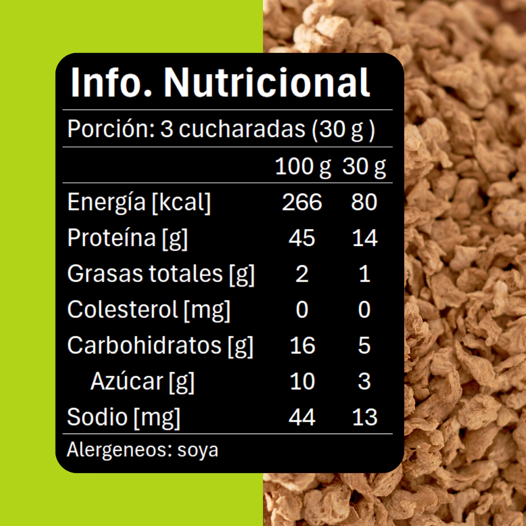 La carne de soya es una excelente fuente de proteína vegetal, sin colesterol ni grasa. Para prepararla, solo hidrata en agua caliente (2 partes de agua por 1 de soya), espera 10 minutos, escurre y ¡listo! Luego puedes sazonarla con tus aliños favoritos.